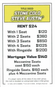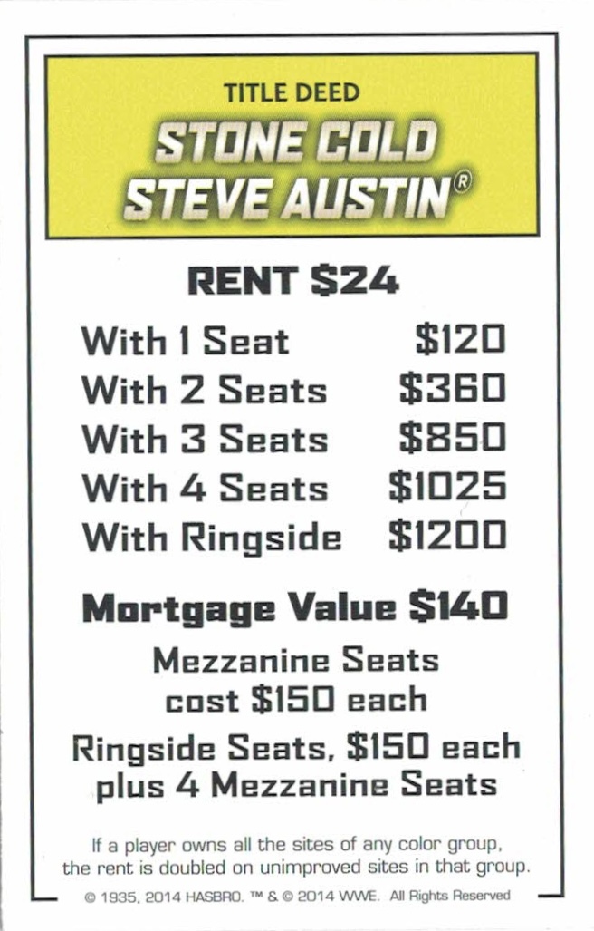 WWE HASBRO MONOPOLY BOARD GAME 2014 – STONE COLD STEVE AUSTIN