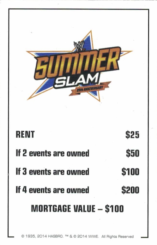 WWE HASBRO MONOPOLY BOARD GAME 2014 – SUMMERSLAM 25TH ANNIVERSARY