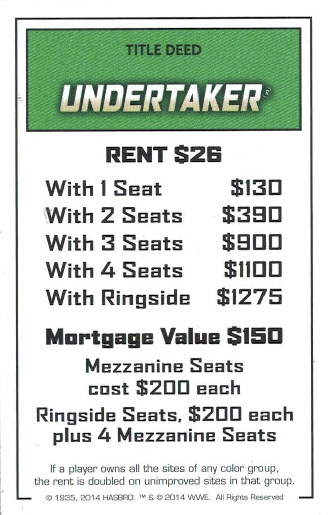 WWE HASBRO MONOPOLY BOARD GAME 2014 – UNDERTAKER