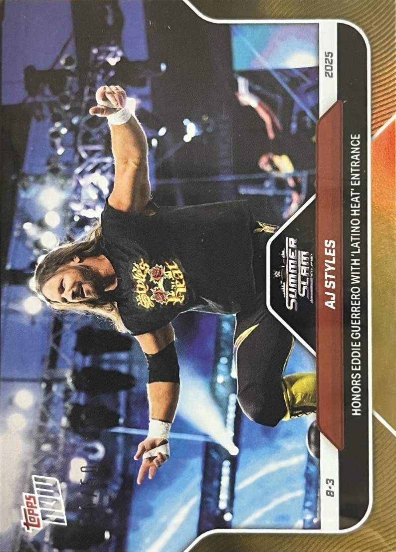 WWE TOPPS NOW 2025 – AJ STYLES HONORS EDDIE GUERRERO WITH ‘LATINO HEAT’ ENTRANCE #87 – GOLD PARALLEL