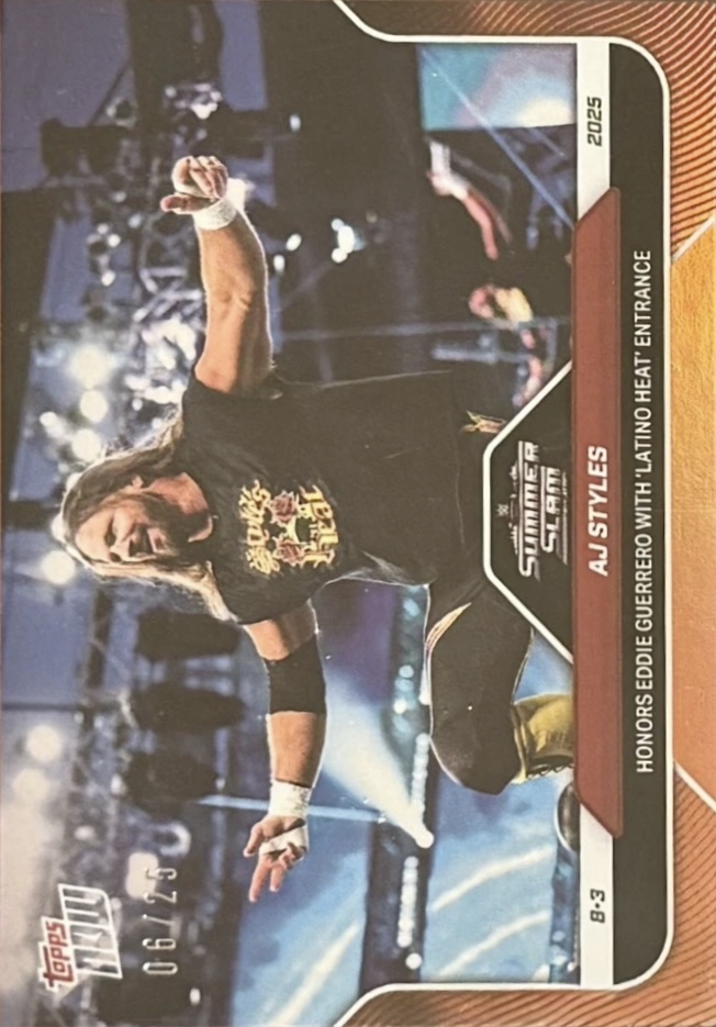 WWE TOPPS NOW 2025 – AJ STYLES HONORS EDDIE GUERRERO WITH ‘LATINO HEAT’ ENTRANCE #87 – ORANGE PARALLEL