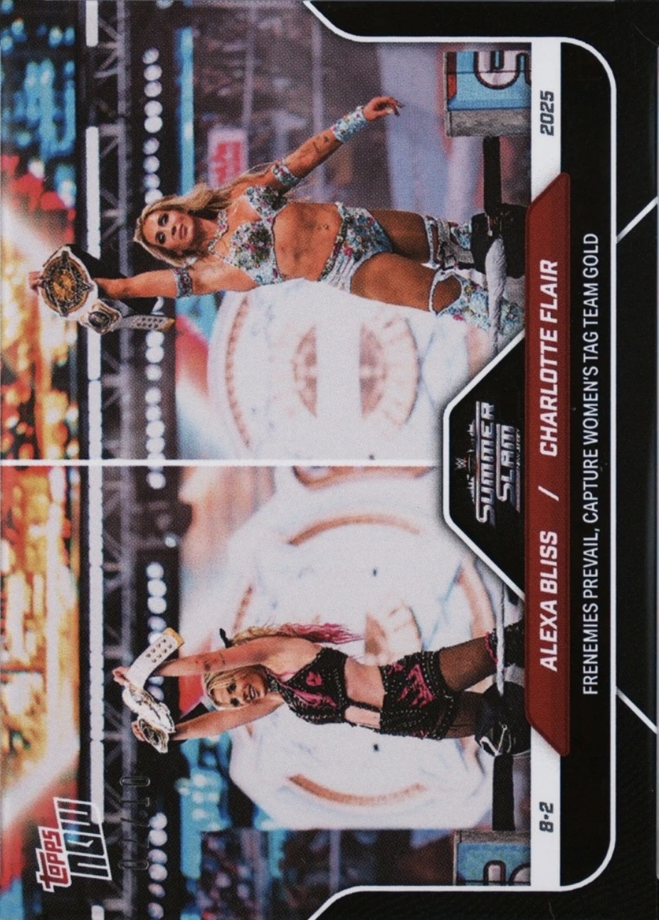 WWE TOPPS NOW 2025 – ALEXA BLISS / CHARLOTTE FLAIR FRENEMIES PREVAIL, CAPTURE WOMEN’S TAG TEAM GOLD #83 – BLACK PARALLEL
