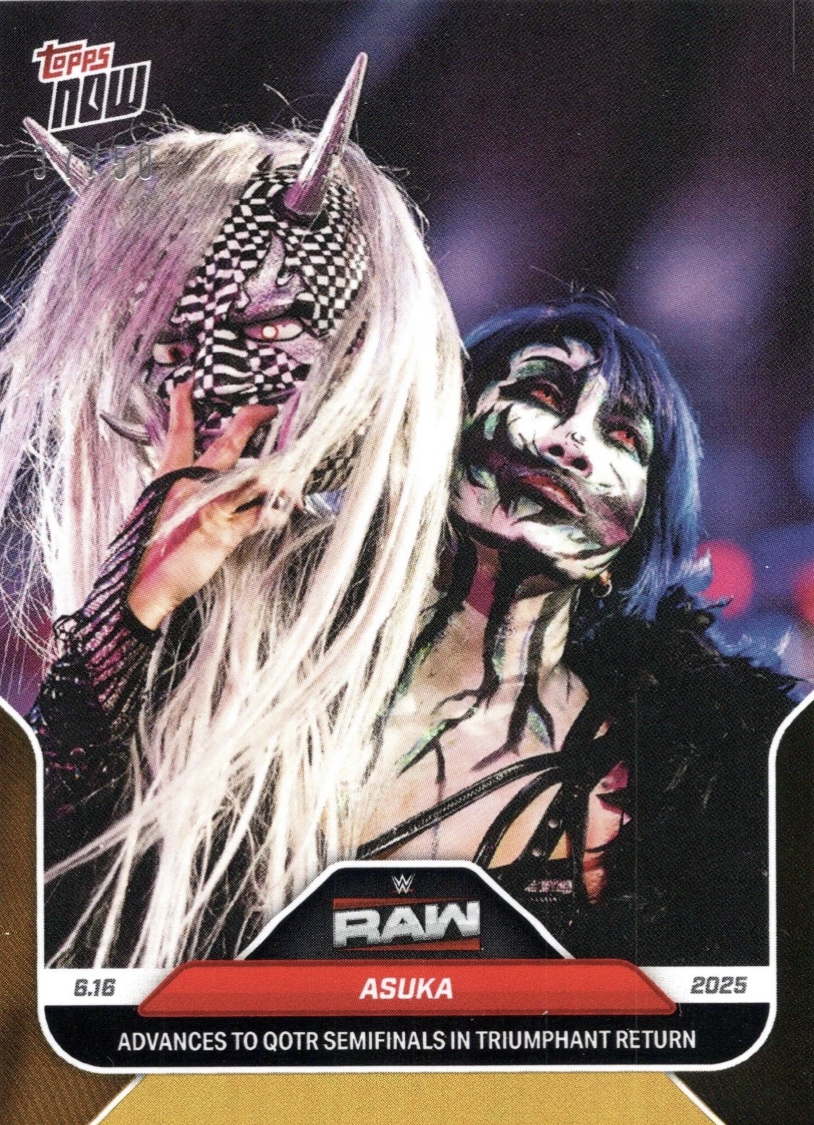 WWE TOPPS NOW 2025 – ASUKA ADVANCES TO QOTR SEMIFINALS IN TRIUMPHANT RETURN #67 – GOLD PARALLEL