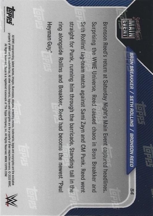 WWE TOPPS NOW 2025 – BREAKKER / ROLLINS / REED REED WREAKS HAVOC AS TERRIFYING TRIO STANDS TALL #54