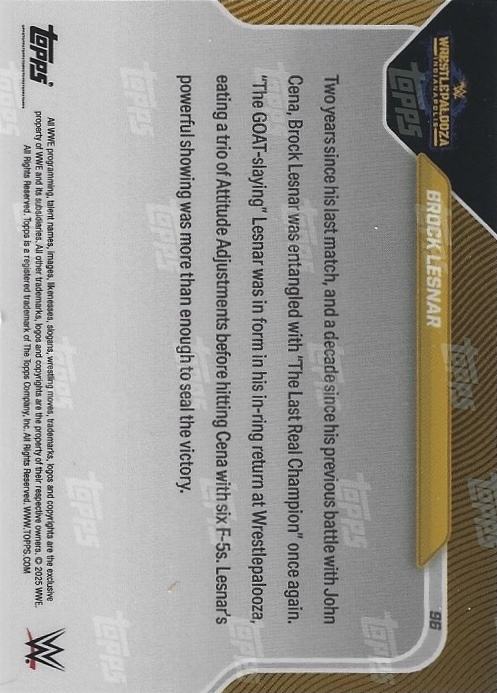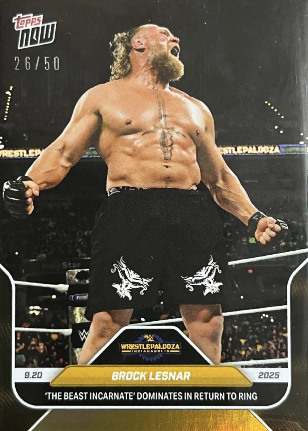 WWE TOPPS NOW 2025 – BROCK LESNAR ‘THE BEAST INCARNATE’ DOMINATES IN RETURN TO RING #96 – GOLD PARALLEL