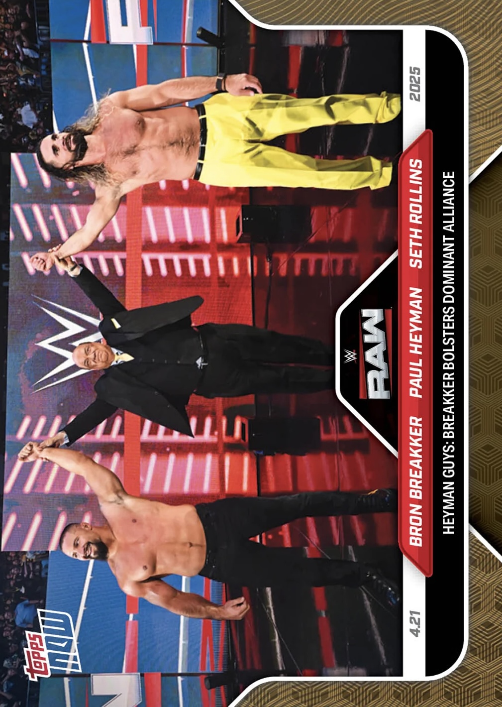 WWE TOPPS NOW 2025 – BRON BREAKKER / PAUL HEYMAN / SETH ROLLINS HEYMAN GUYS: BREAKKER BOLSTERS DOMINANT ALLIANCE #48 – FOIL FRACTOR PARALLEL