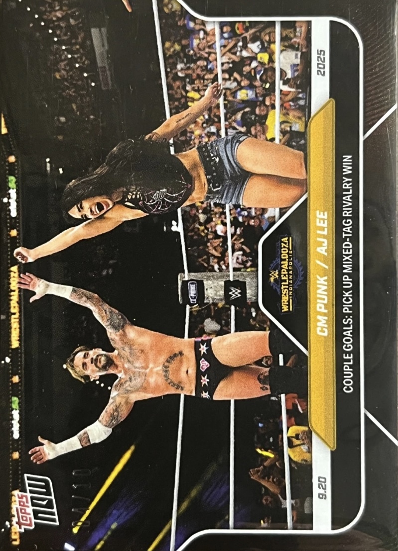 WWE TOPPS NOW 2025 – CM PUNK / AJ LEE COUPLE GOALS: PICK UP MIXED-TAG RIVALRY WIN #98 – BLACK PARALLEL