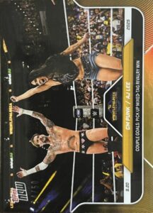 WWE TOPPS NOW 2025 – CM PUNK / AJ LEE COUPLE GOALS: PICK UP MIXED-TAG RIVALRY WIN #98 – GOLD PARALLEL