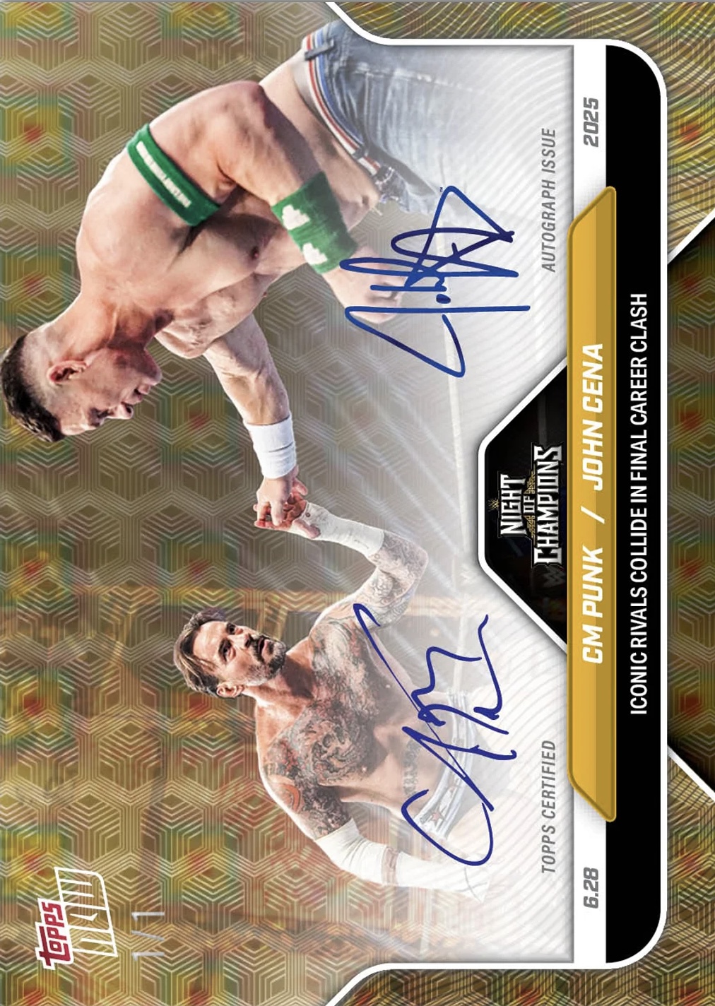WWE TOPPS NOW 2025 – CM PUNK / JOHN CENA ICONIC RIVALS COLLIDE IN FINAL CAREER CLASH #78A – FOIL FRACTOR PARALLEL AUTOGRAPH