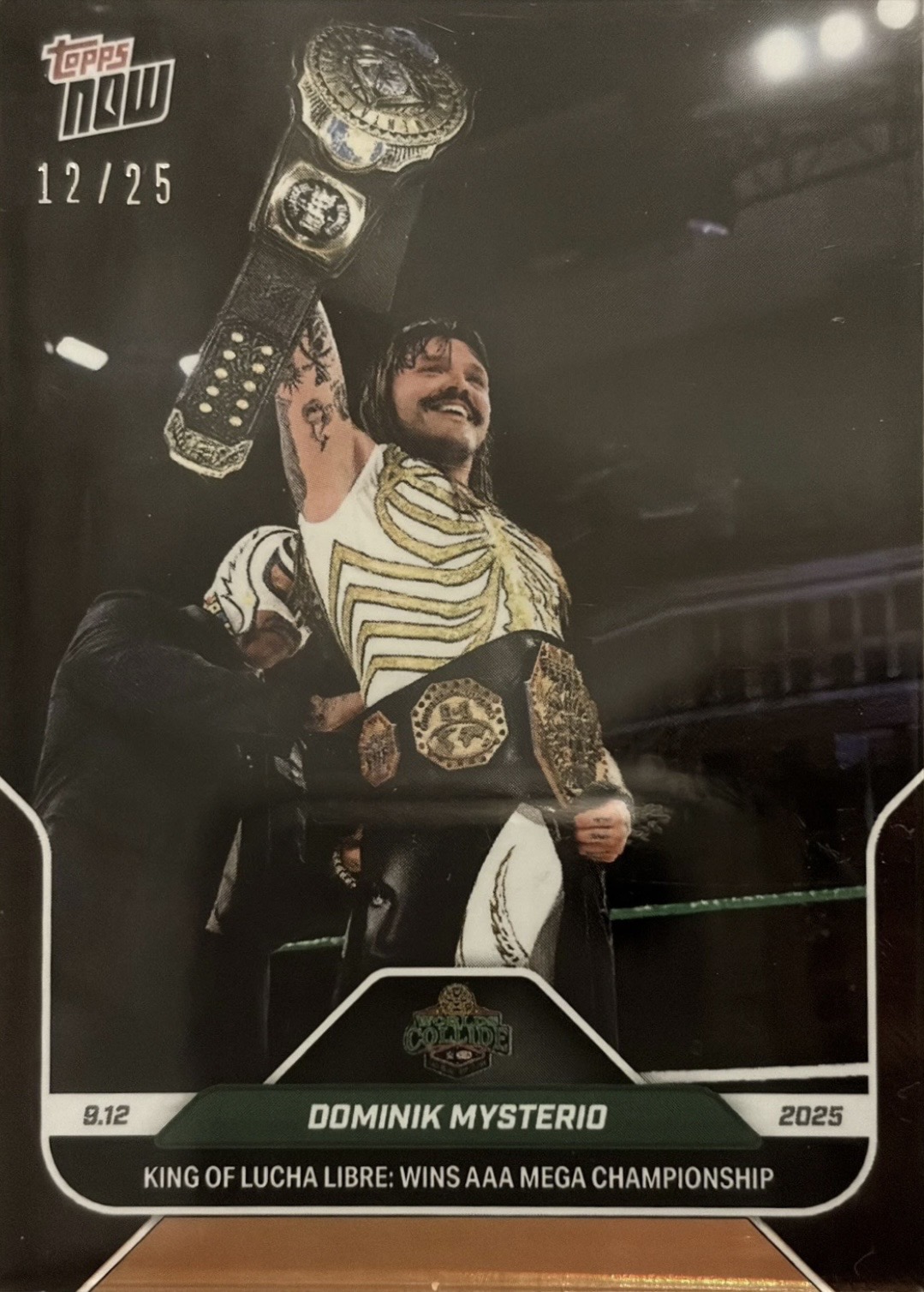 WWE TOPPS NOW 2025 – DOMINIK MYSTERIO KING OF LUCHA LIBRE: WINS AAA MEGA CHAMPIONSHIP #94 – ORANGE PARALLEL