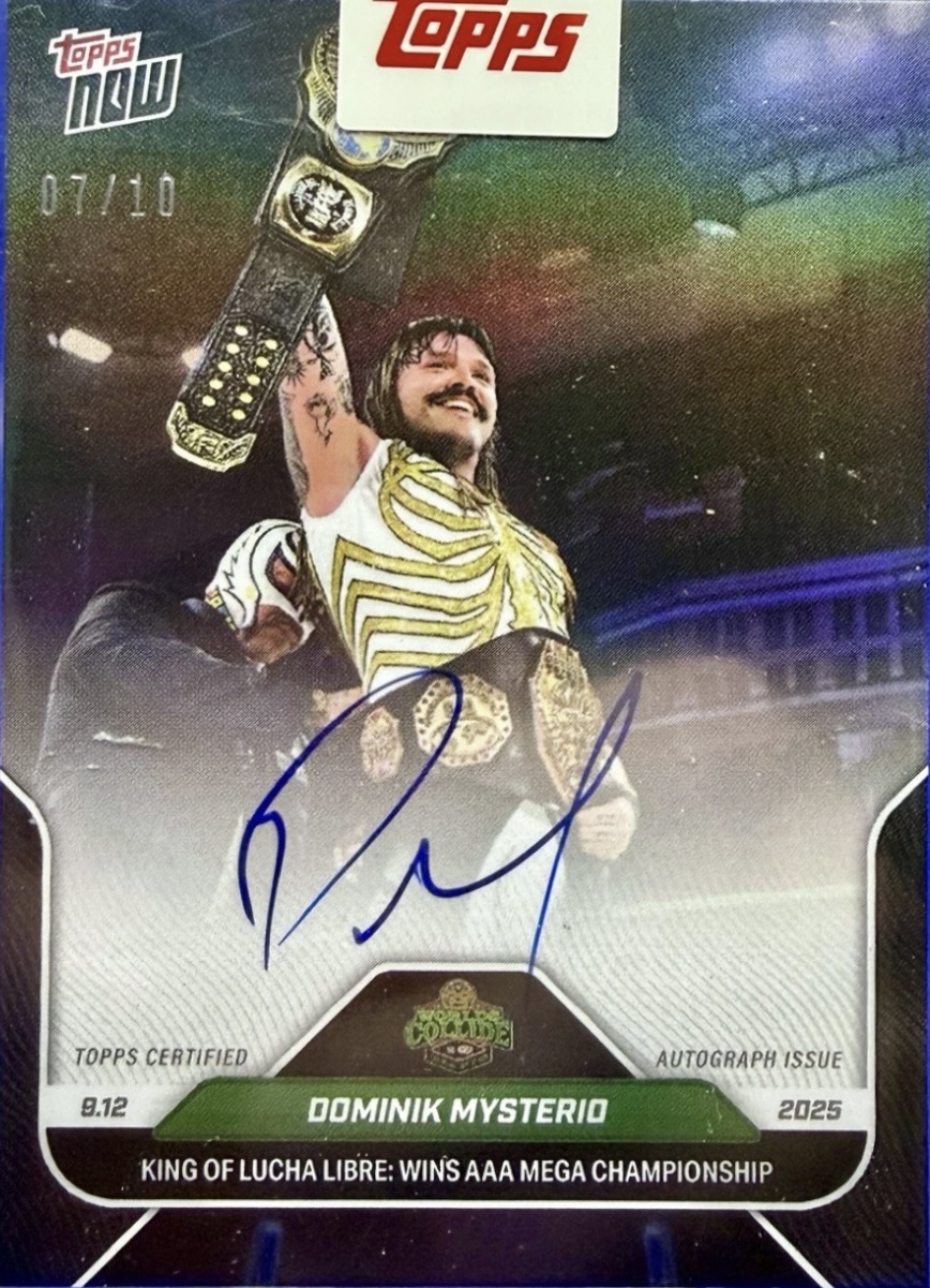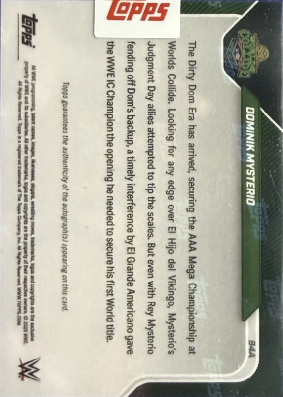 WWE TOPPS NOW 2025 – DOMINIK MYSTERIO KING OF LUCHA LIBRE: WINS AAA MEGA CHAMPIONSHIP #94A – BLACK PARALLEL AUTOGRAPH
