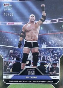 WWE TOPPS NOW 2025 – GOLDBERG FINAL WWE MATCH PUTS EXCLAMATION ON HOF CAREER #79 – GOLD PARALLEL