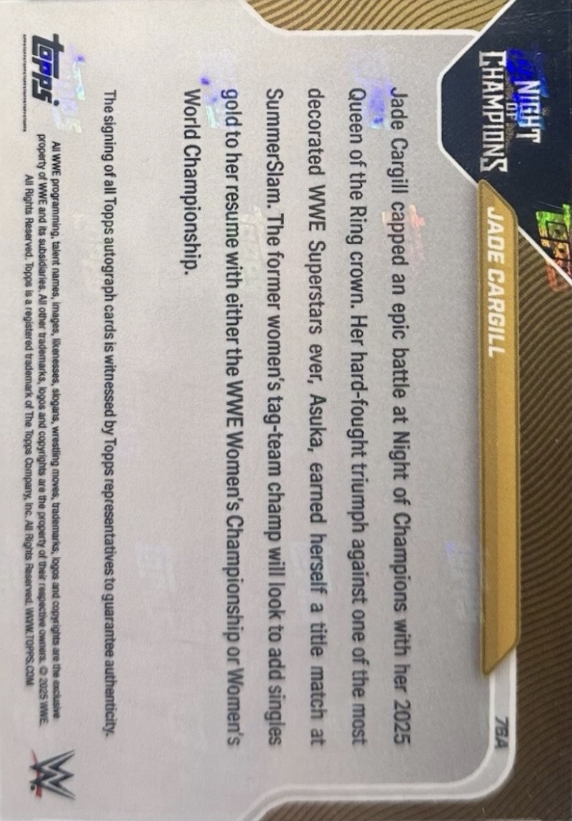 WWE TOPPS NOW 2025 – JADE CARGILL 2025 QUEEN OF THE RING WINNER #76A – BLACK PARALLEL AUTOGRAPH