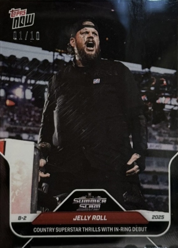 WWE TOPPS NOW 2025 – JELLY ROLL COUNTRY SUPERSTAR THRILLS WITH IN-RING DEBUT #85 – BLACK PARALLEL