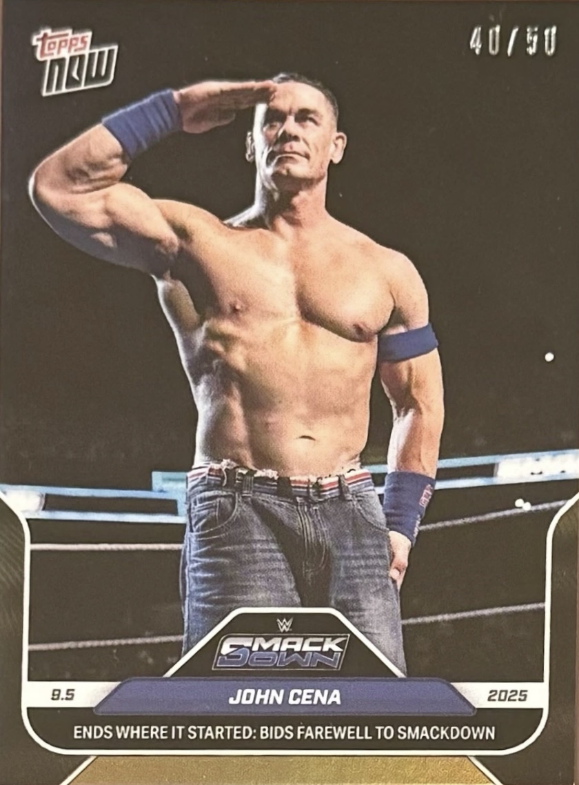 WWE TOPPS NOW 2025 – JOHN CENA ENDS WHERE IT STARTED: BIDS FAREWELL TO SMACKDOWN #93 – GOLD PARALLEL