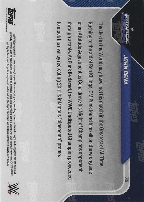 WWE TOPPS NOW 2025 – JOHN CENA PIPEBOMB: ADDS INSULT TO INJURY AHEAD OF TITLE CLASH #70