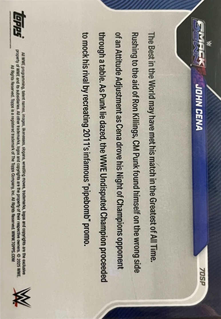 WWE TOPPS NOW 2025 – JOHN CENA PIPEBOMB: ADDS INSULT TO INJURY AHEAD OF TITLE CLASH #70SP – VARIANT