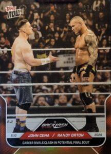 WWE TOPPS NOW 2025 – JOHN CENA / RANDY ORTON CAREER RIVALS CLASH IN POTENTIAL FINAL BOUT #52 – ORANGE PARALLEL