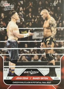 WWE TOPPS NOW 2025 – JOHN CENA / RANDY ORTON CAREER RIVALS CLASH IN POTENTIAL FINAL BOUT #52 – RED PARALLEL