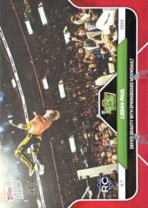 WWE TOPPS NOW 2025 – LOGAN PAUL DEFIES GRAVITY WITH SPRINGBOARD MOONSAULT #65 – RED PARALLEL
