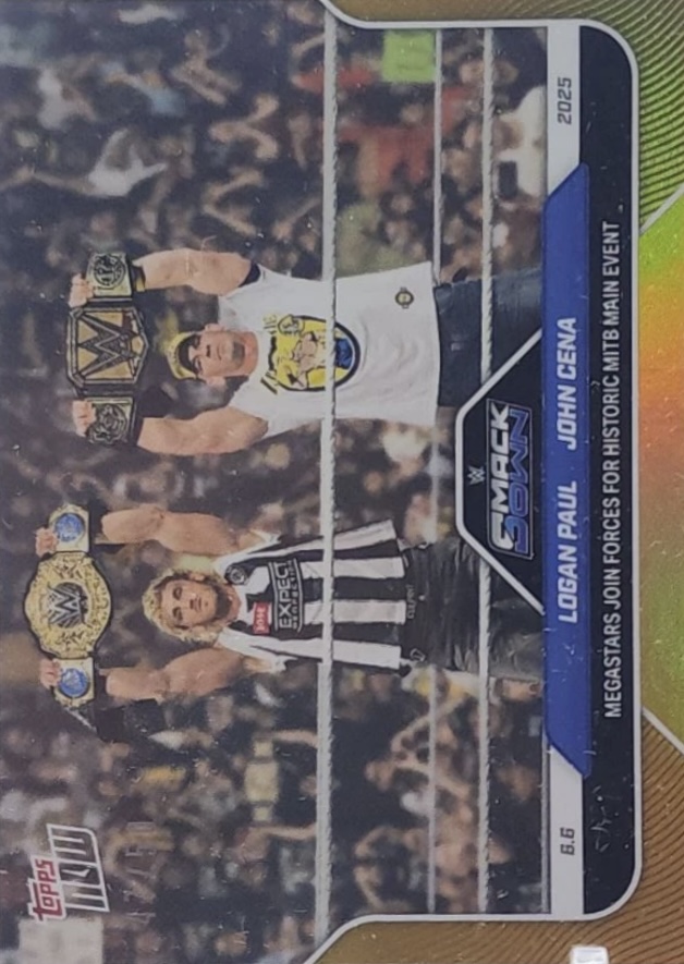 WWE TOPPS NOW 2025 – LOGAN PAUL / JOHN CENA MEGASTARS JOIN FORCES FOR HISTORIC MITB MAIN EVENT #59 – GOLD PARALLEL