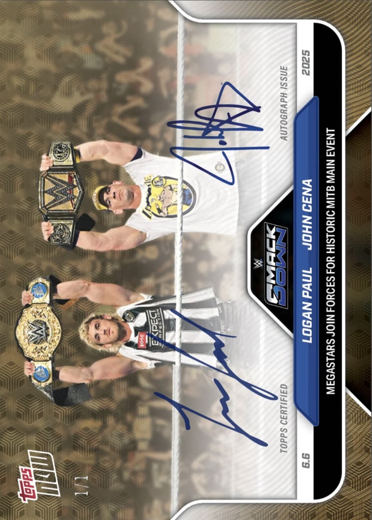 WWE TOPPS NOW 2025 – LOGAN PAUL / JOHN CENA MEGASTARS JOIN FORCES FOR HISTORIC MITB MAIN EVENT #59A – FOIL FRACTOR PARALLEL AUTOGRAPH