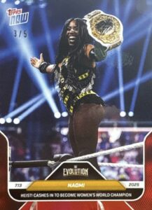 WWE TOPPS NOW 2025 – NAOMI HEIST! CASHES IN TO BECOME WOMEN’S WORLD CHAMPION #81 – RED PARALLEL