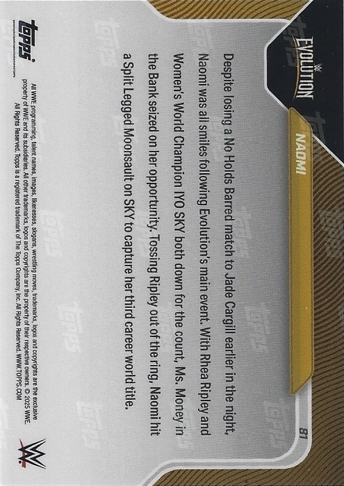 WWE TOPPS NOW 2025 – NAOMI HEIST! CASHES IN TO BECOME WOMEN’S WORLD CHAMPION #81