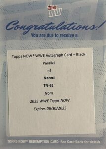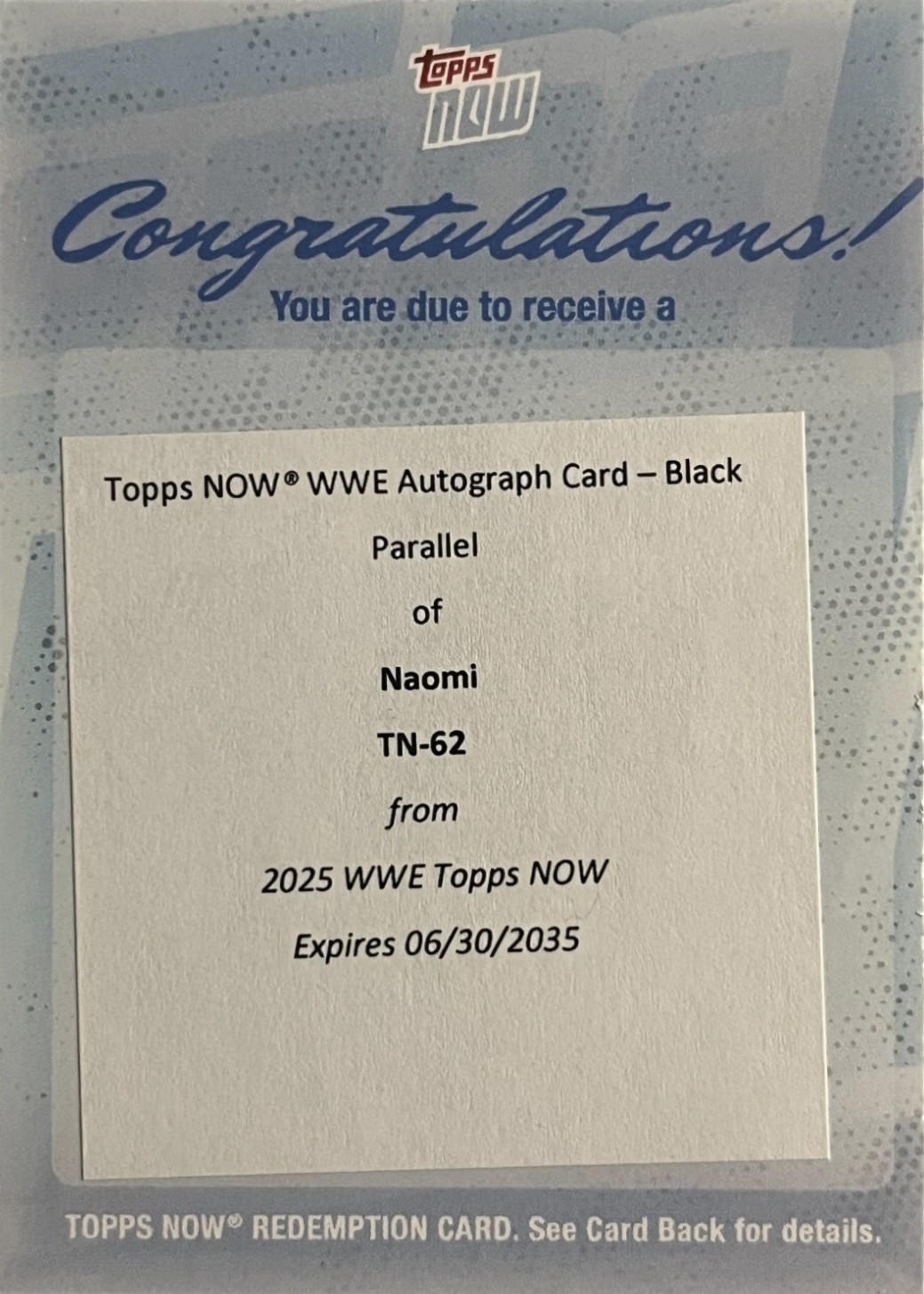 WWE TOPPS NOW 2025 – NAOMI #TN-62 – BLACK PARALLEL AUTOGRAPH REDEMPTION CARD