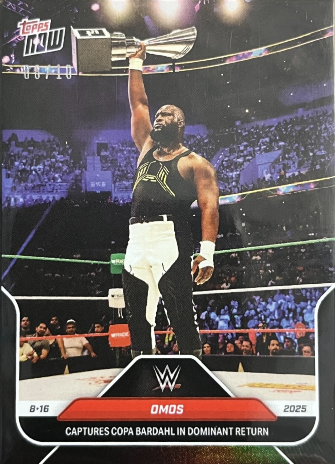 WWE TOPPS NOW 2025 – OMOS CAPTURES COPA BARDAHL IN DOMINANT RETURN #89 – BLACK PARALLEL