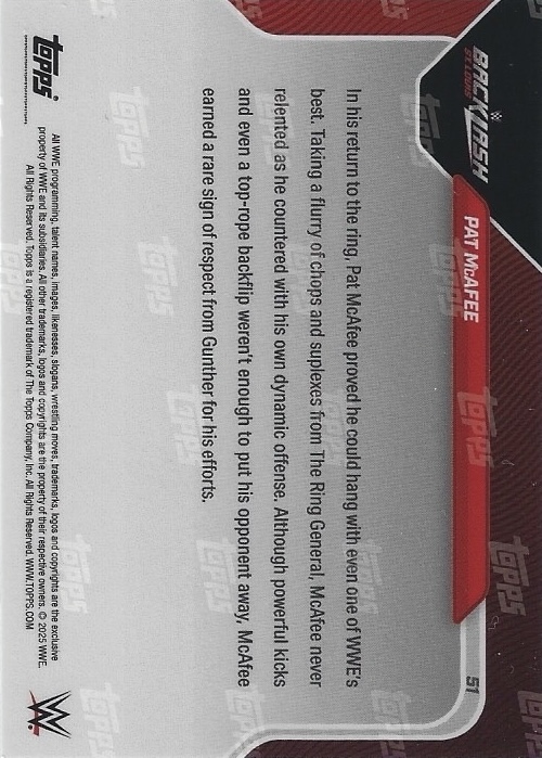 WWE TOPPS NOW 2025 – PAT MCAFEE THRILLS WWE UNIVERSE WITH STANDOUT PERFORMANCE #51