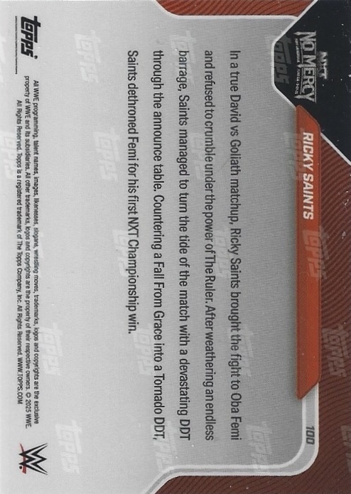 WWE TOPPS NOW 2025 – RICKY SAINTS THE REVOLUTION IS HERE: WINS NXT CHAMPIONSHIP #100 – GOLD PARALLEL