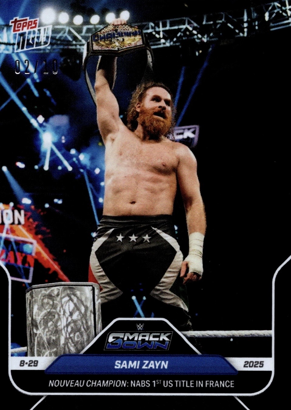 WWE TOPPS NOW 2025 – SAMI ZAYN NOUVEAU CHAMPION: NABS 1ST US TITLE IN FRANCE #90 – BLACK PARALLEL