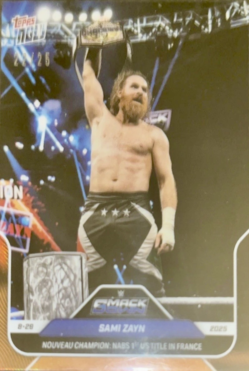 WWE TOPPS NOW 2025 – SAMI ZAYN NOUVEAU CHAMPION: NABS 1ST US TITLE IN FRANCE #90 – ORANGE PARALLEL