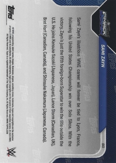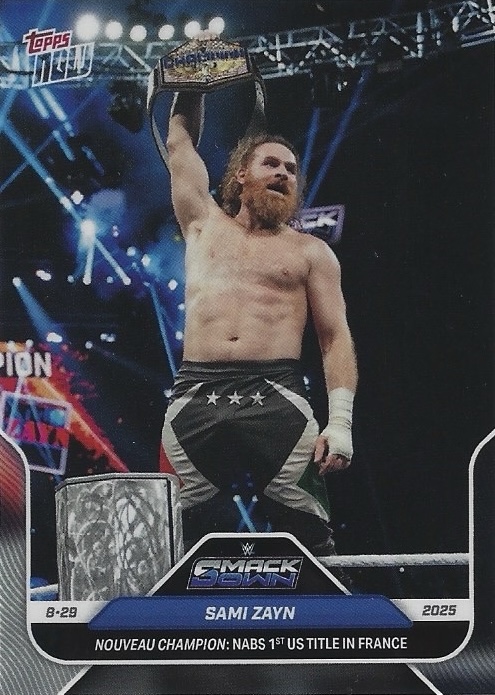 WWE TOPPS NOW 2025 – SAMI ZAYN NOUVEAU CHAMPION: NABS 1ST US TITLE IN FRANCE #90