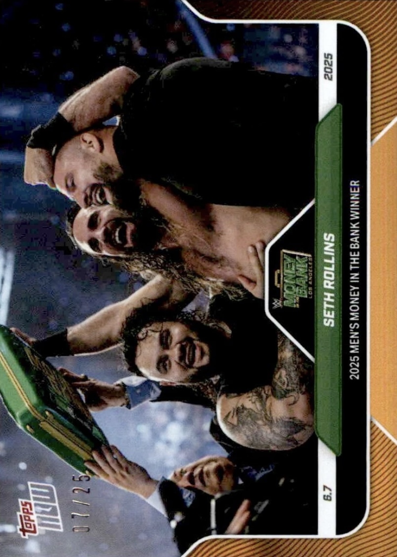WWE TOPPS NOW 2025 – SETH ROLLINS 2025 MEN’S MONEY IN THE BANK WINNER #64 – ORANGE PARALLEL