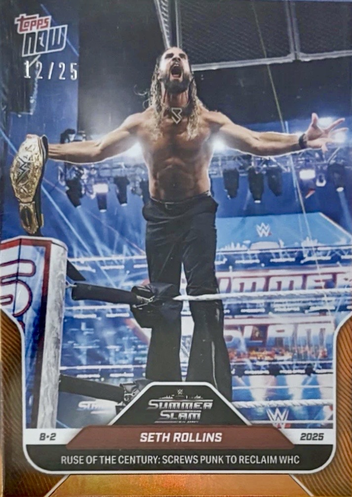 WWE TOPPS NOW 2025 – SETH ROLLINS RUSE OF THE CENTURY: SCREWS PUNK TO RECLAIM WHC #84 – ORANGE PARALLEL