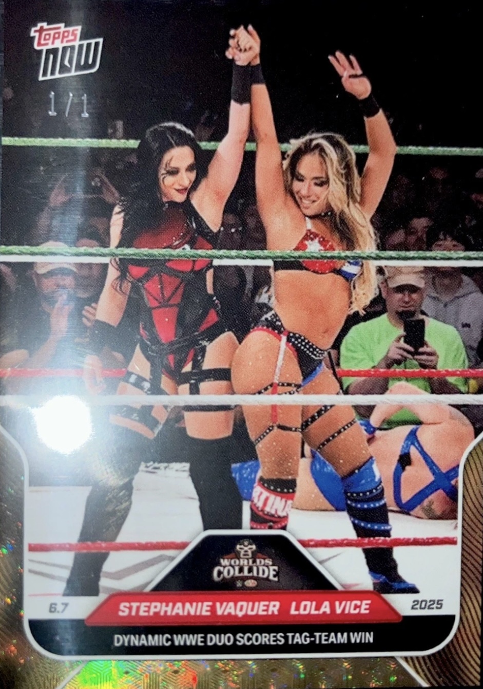 WWE TOPPS NOW 2025 – STEPHANIE VAQUER / LOLA VICE DYNAMIC WWE DUO SCORES TAG-TEAM WIN #60 – FOIL FRACTOR PARALLEL