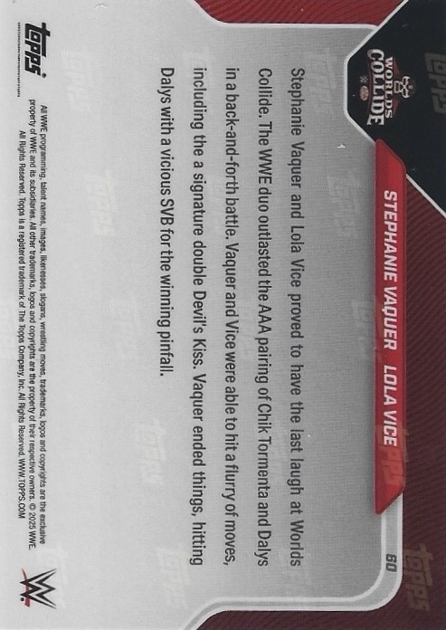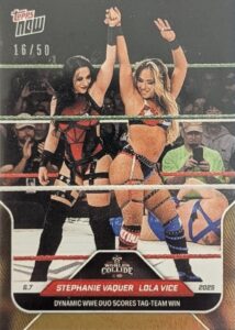 WWE TOPPS NOW 2025 – STEPHANIE VAQUER / LOLA VICE DYNAMIC WWE DUO SCORES TAG-TEAM WIN #60 – GOLD PARALLEL