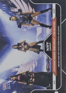WWE TOPPS NOW 2025 – STEPHANIE VAQUER / RHEA RIPLEY / LYRA VALKYRIA DREAM TEAM TRIO TAKES DOWN FATAL INFLUENCE #95 – BLACK PARALLEL