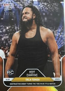 WWE TOPPS NOW 2025 – TALA TONGA DESTRUCTIVE DEBUT TURNS THE TIDE IN US TITLE MATCH #75 – ORANGE PARALLEL