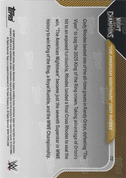 WWE TOPPS NOW 2025 – “THE AMERICAN NIGHTMARE” CODY RHODES 2025 KING OF THE RING WINNER #73