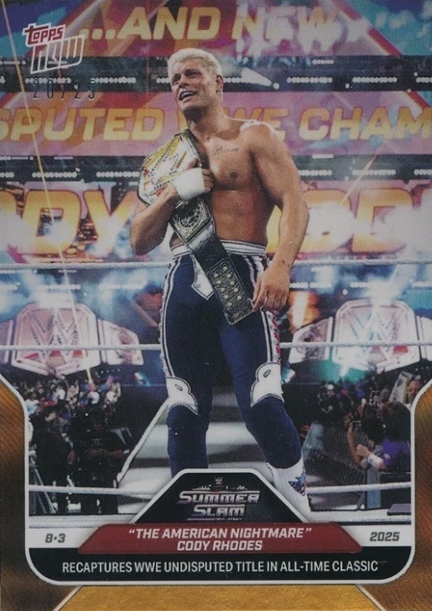WWE TOPPS NOW 2025 – “THE AMERICAN NIGHTMARE” CODY RHODES RECAPTURES WWE UNDISPUTED TITLE IN ALL-TIME CLASSIC #86 – ORANGE PARALLEL