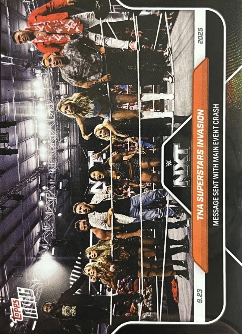WWE TOPPS NOW 2025 – TNA SUPERSTARS INVASION MESSAGE SENT WITH MAIN EVENT CRASH #99 – BLACK PARALLEL