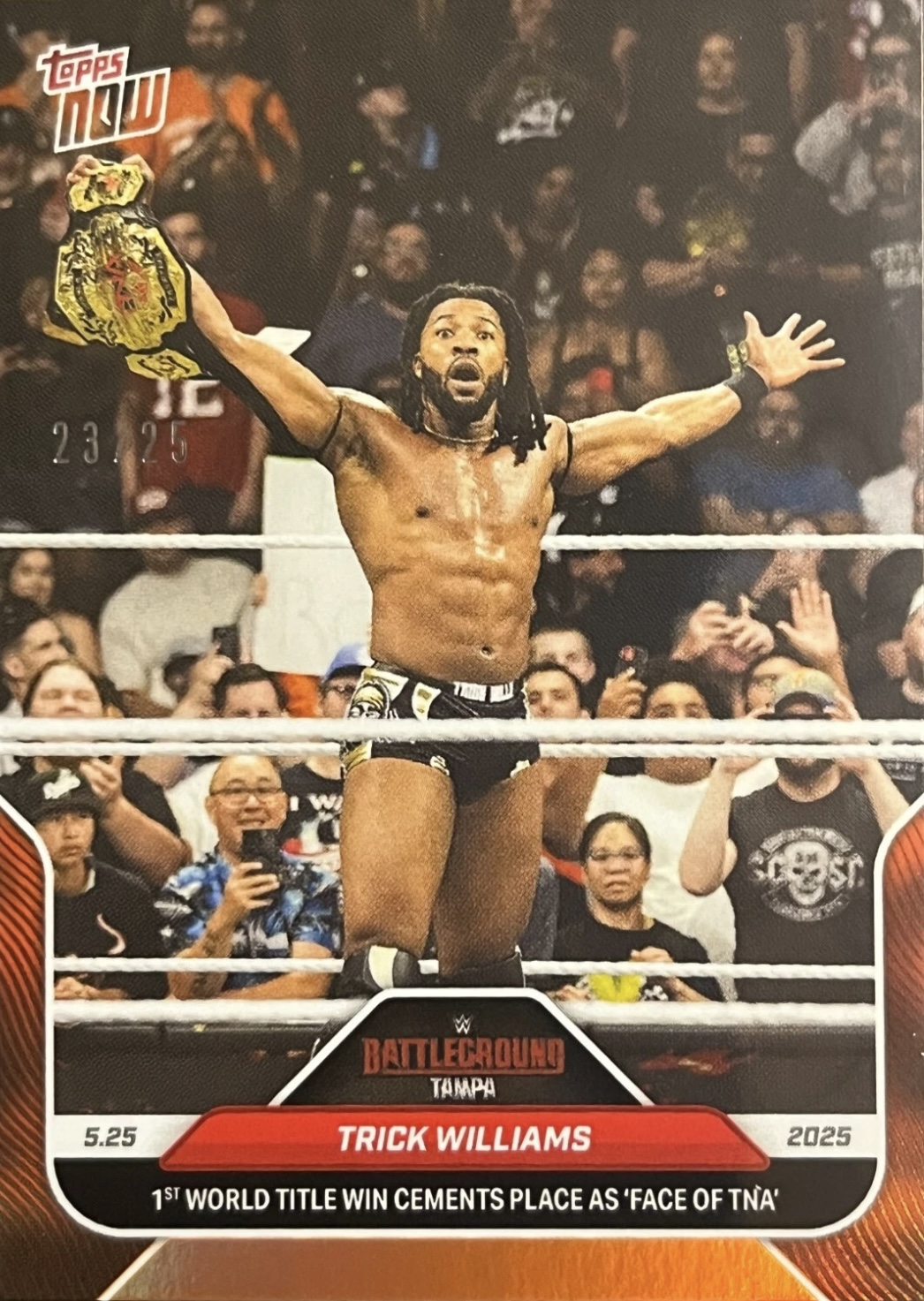 WWE TOPPS NOW 2025 – TRICK WILLIAMS 1ST WORLD TITLE WIN CEMENTS PLACE AS ‘FACE OF TNA’ #56 – ORANGE PARALLEL