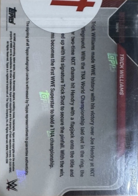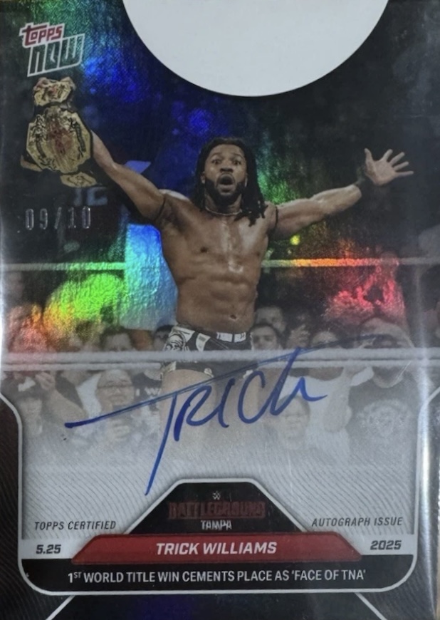 WWE TOPPS NOW 2025 – TRICK WILLIAMS 1ST WORLD TITLE WIN CEMENTS PLACE AS ‘FACE OF TNA’ #56A – BLACK PARALLEL AUTOGRAPH