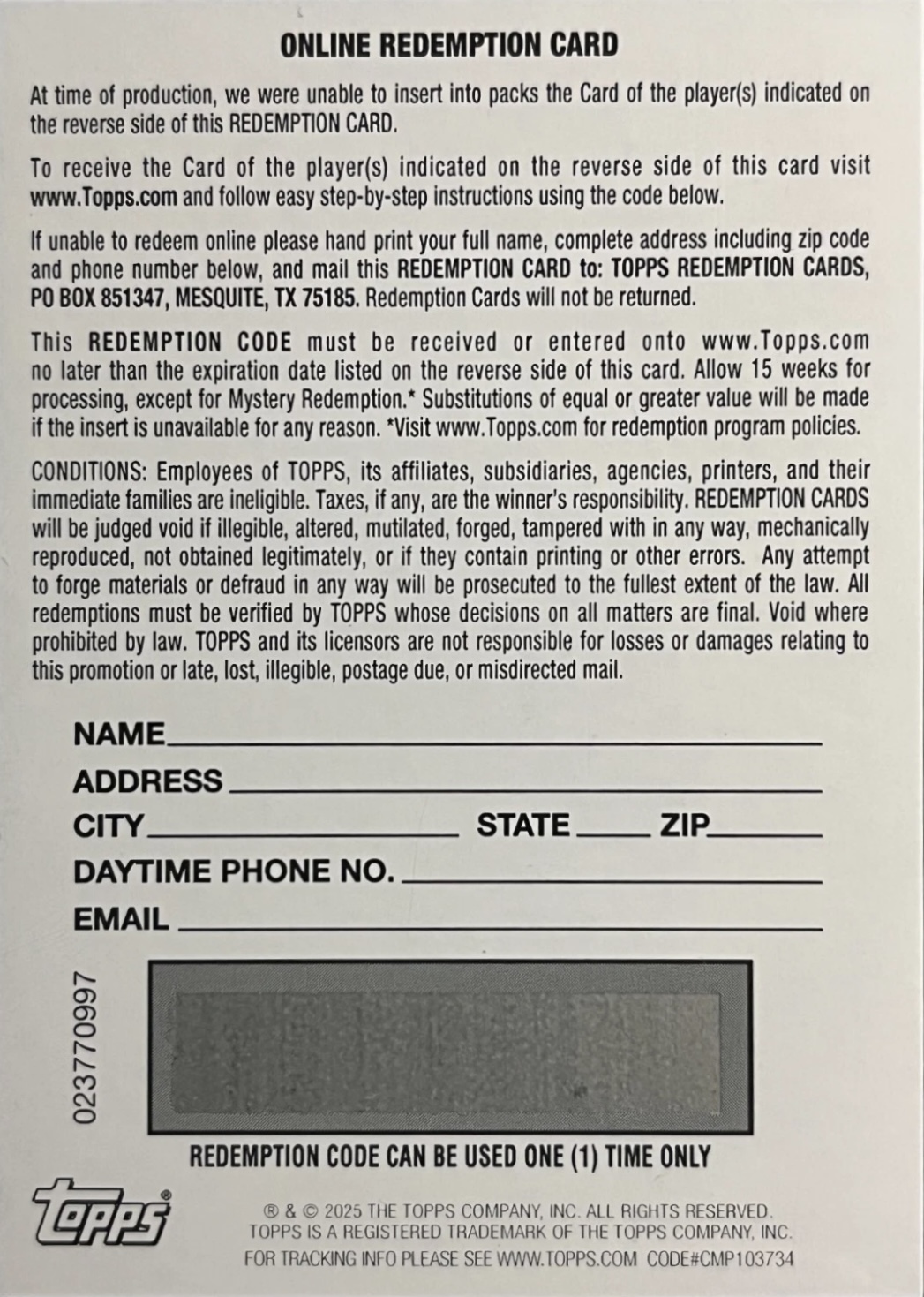 WWE TOPPS NOW 2025 – TRICK WILLIAMS #TN-56 – RED PARALLEL AUTOGRAPH REDEMPTION CARD