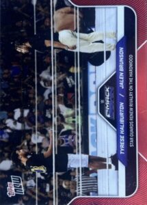 WWE TOPPS NOW 2025 – TYRESE HALIBURTON / JALEN BRUNSON STAR GUARDS RENEW RIVALRY ON THE HARDWOOD #THJB – RED PARALLEL