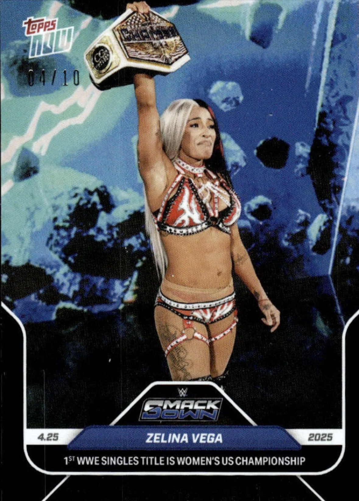 WWE TOPPS NOW 2025 – ZELINA VEGA 1ST WWE SINGLES TITLE IS WOMEN’S US CHAMPIONSHIP #49 – BLACK PARALLEL